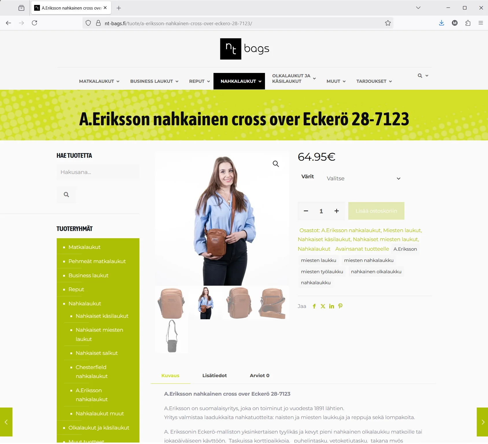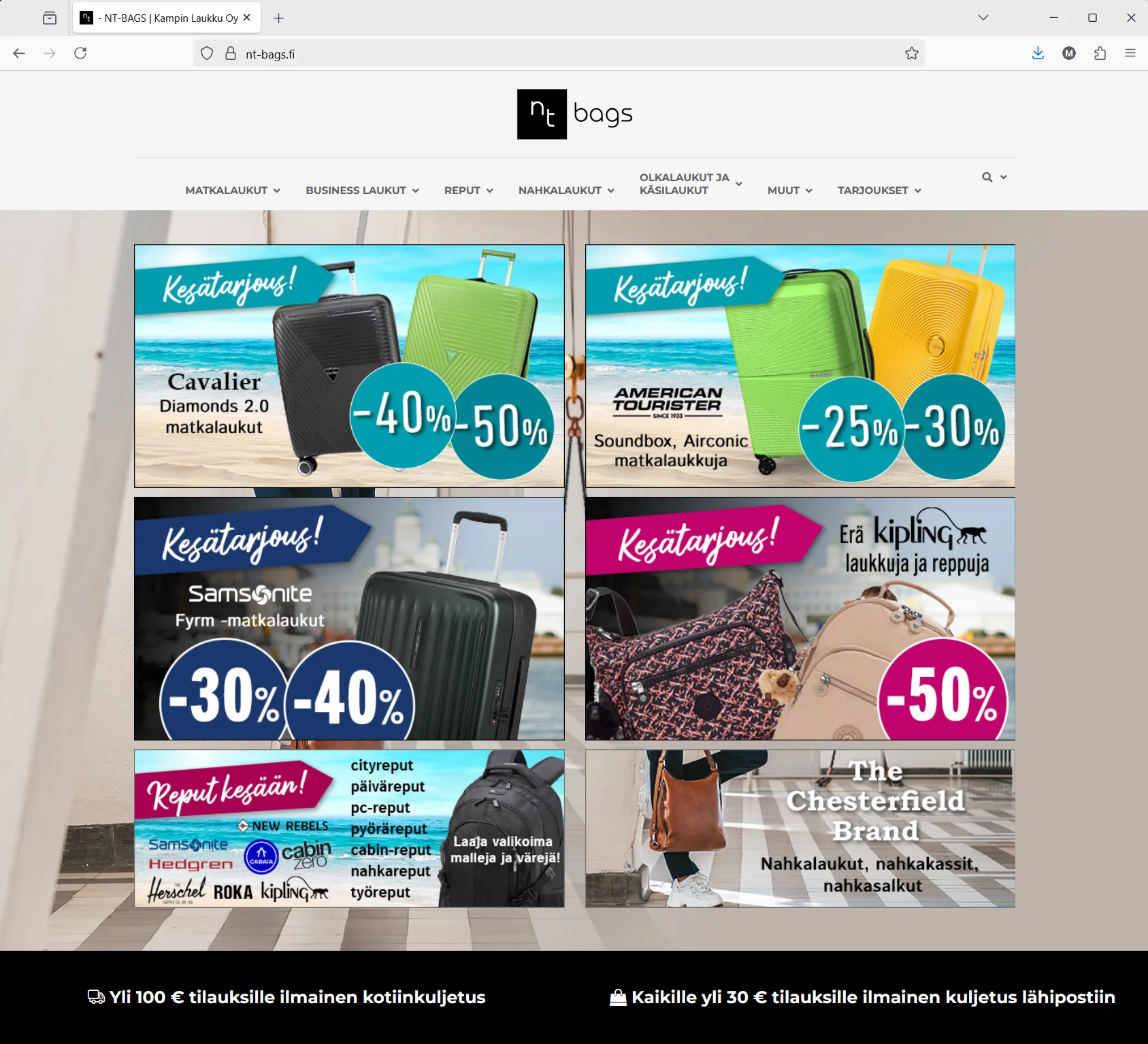 Palvelutlogo, verkkokauppa, nettibannerimainonta, lehtimainonta, tuotekuvaukset, Google-markkinointiVuosi2014 ->Kotisivuwww.nt-bags.fi