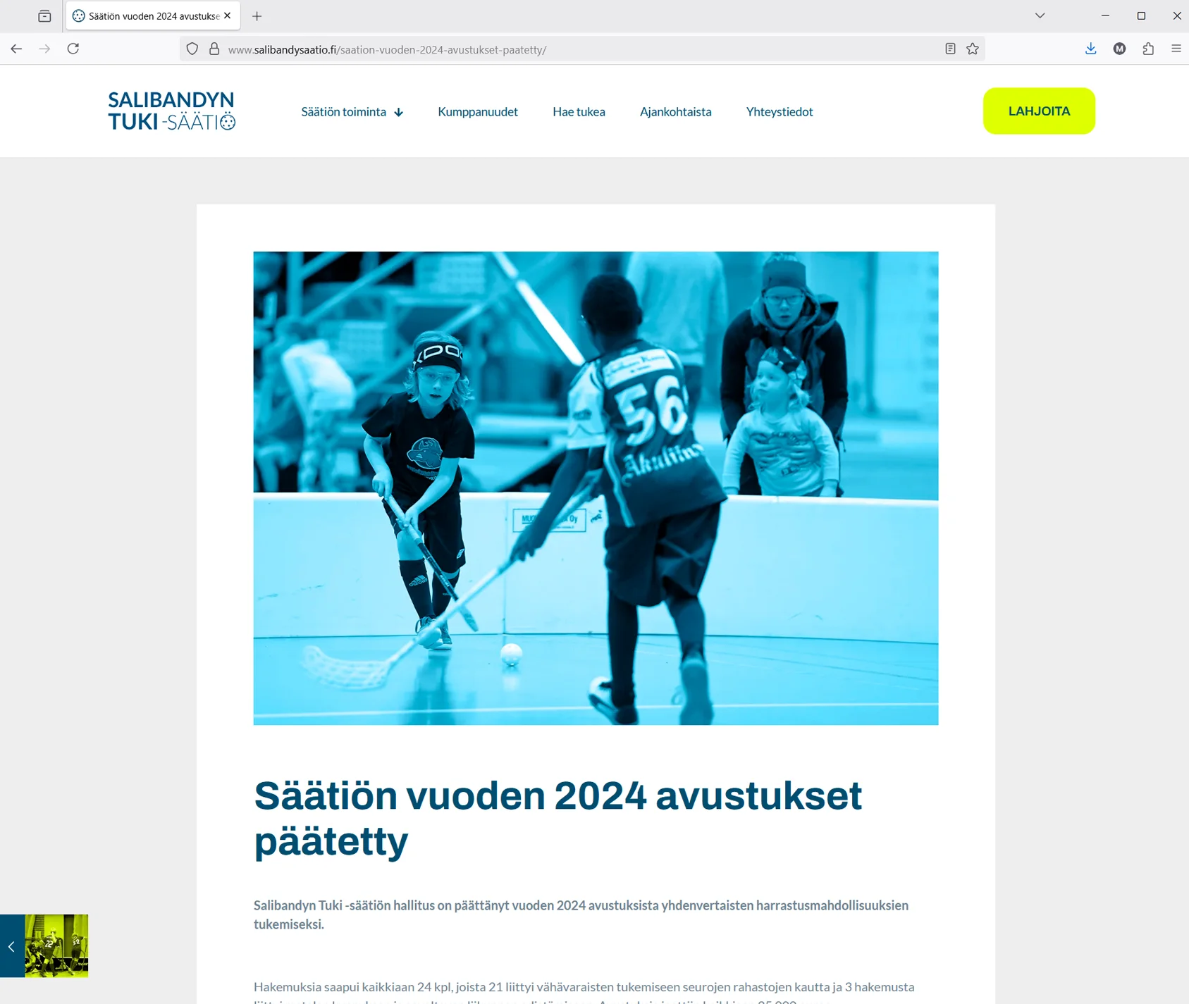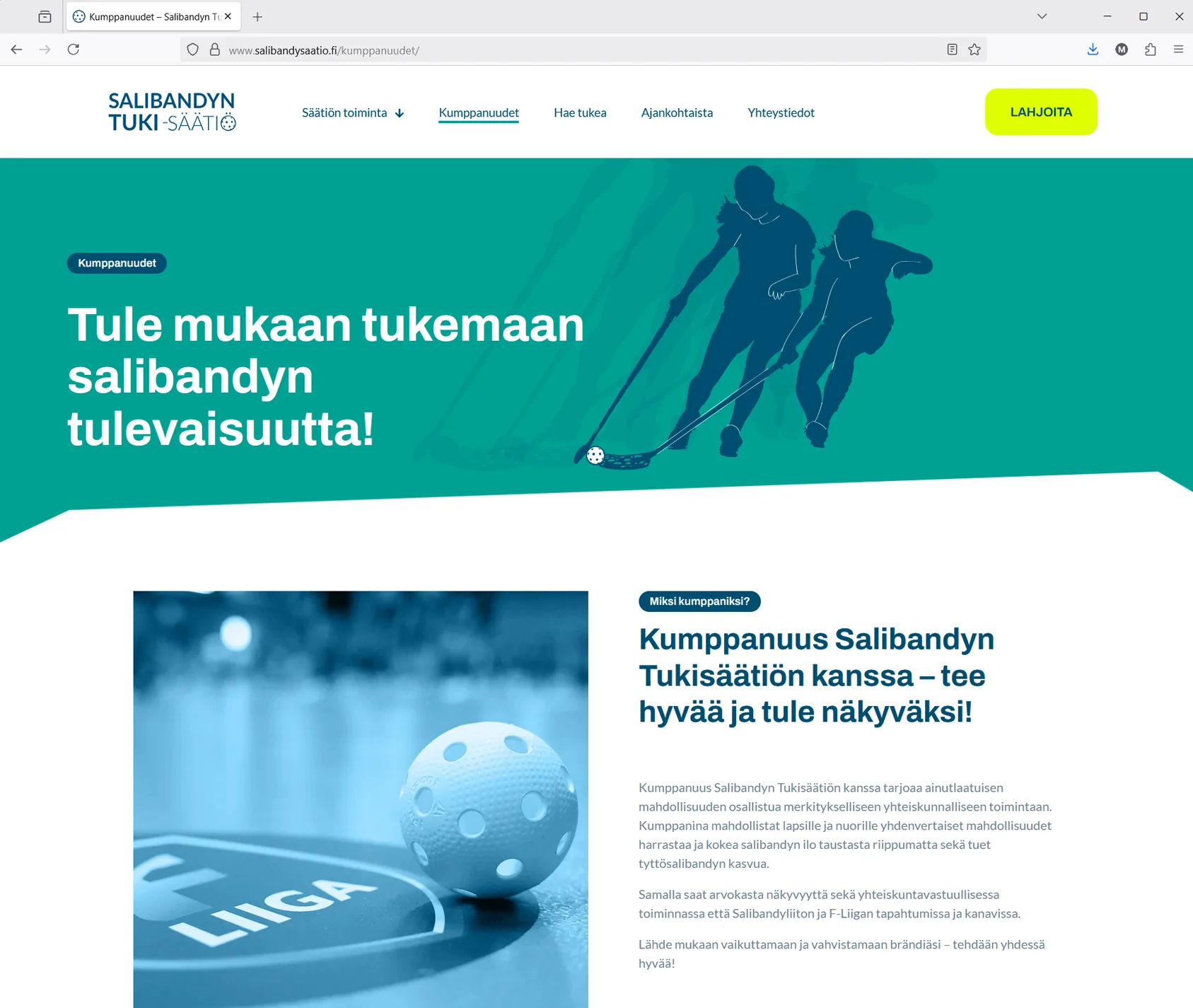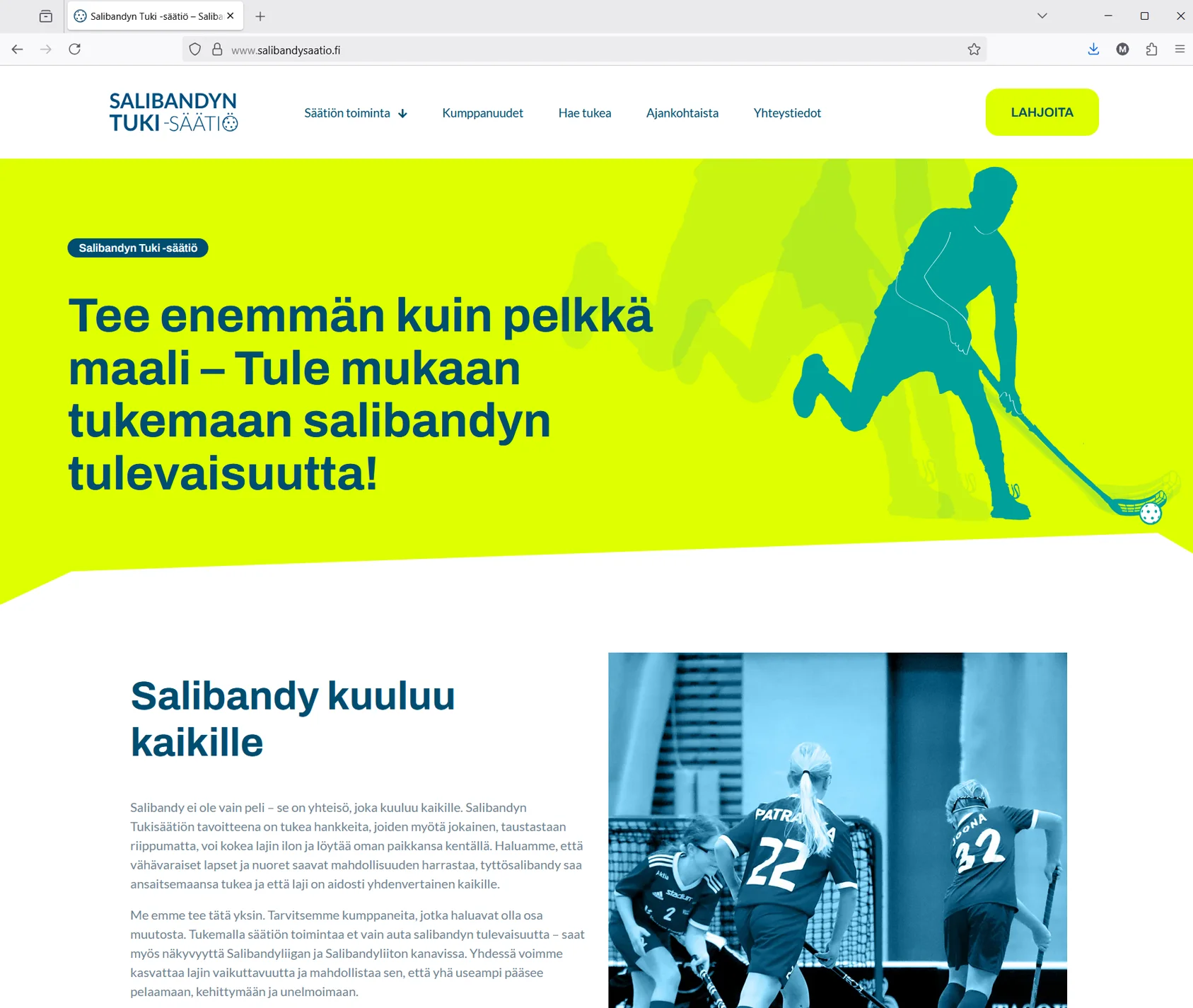 AsiakasSalibandyn tuki -säätiöPalvelutLogo, nettisivutVuosi2025 ->Kotisivuwww.salibandysaatio.fi